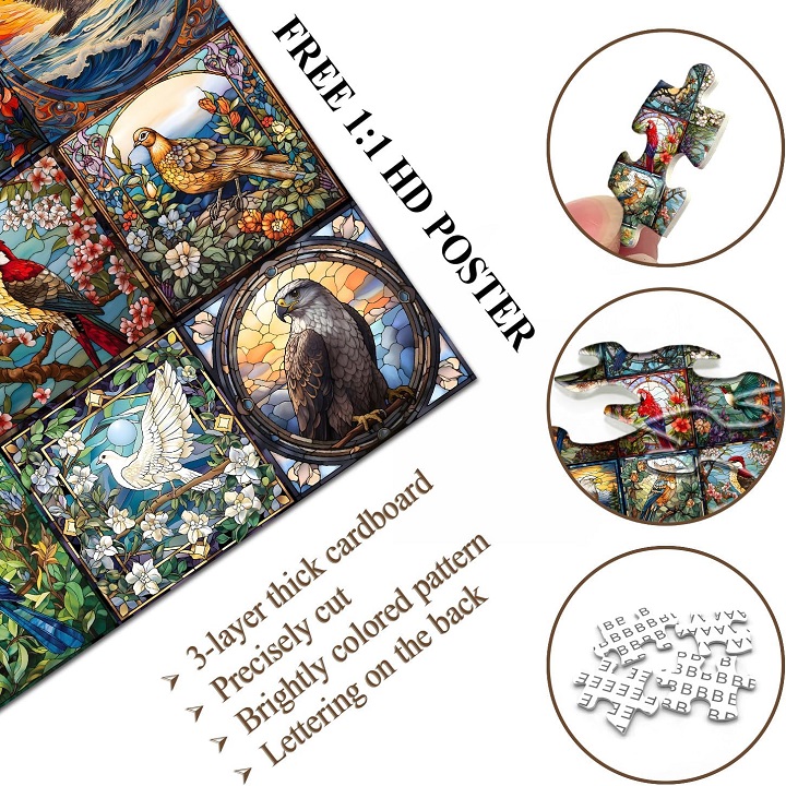 Materiales de alta calidad: los rompecabezas de pájaros están elaborados con materiales ecológicos de primera calidad, lo que garantiza durabilidad y una experiencia de resolución de rompecabezas fluida y agradable. Las piezas están fabricadas con cartón grueso y resistente, lo que evita que se doblen o dañen durante el montaje. Los bordes finos y cortados con precisión de cada pieza encajan perfectamente, creando un ajuste satisfactorio y seguro cuando se completa el rompecabezas. Esto garantiza que el rompecabezas aguante un uso repetido, lo que permite un disfrute duradero. Además, los colores vivos y los diseños complejos están impresos con tintas no tóxicas, lo que los hace seguros para todas las edades. Ya sea que completes el rompecabezas una o varias veces, la alta calidad garantiza que cada experiencia será tan placentera como la primera.