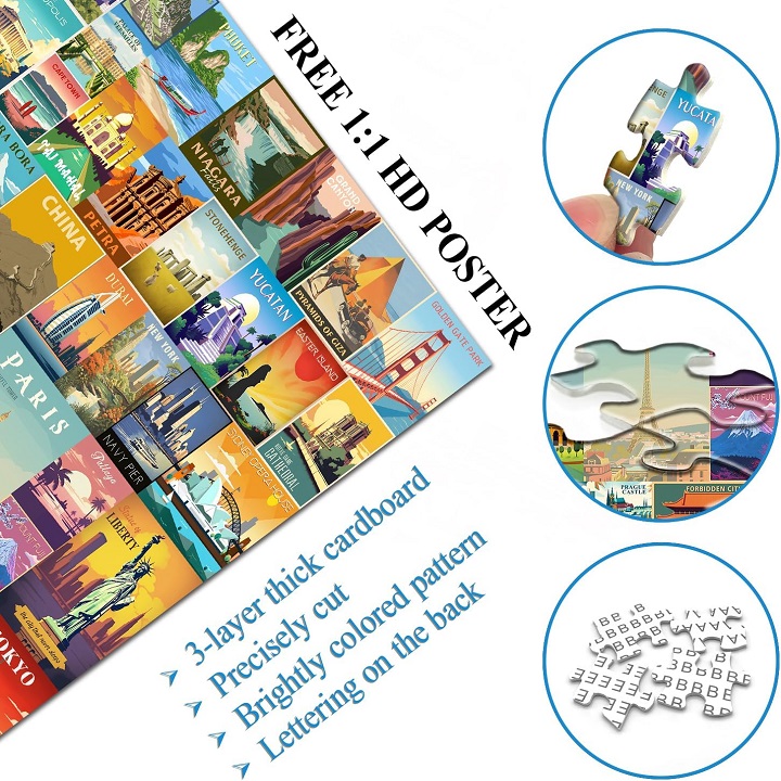 Experiencia atractiva y educativa: Travel Puzzles ofrece una experiencia inmersiva y educativa, presentando a los usuarios diversas culturas, paisajes y sitios históricos a través de piezas de rompecabezas bellamente diseñadas. Cada rompecabezas está meticulosamente diseñado para representar un destino específico, lo que permite a los usuarios no sólo disfrutar el proceso de resolución sino también aprender sobre los lugares representados. Este aspecto educativo potencia el valor de los rompecabezas, convirtiéndolos no sólo en una forma de entretenimiento sino también en una oportunidad para ampliar el conocimiento geográfico. Ya sean monumentos emblemáticos como la Torre Eiffel o lugares más oscuros, resolver estos acertijos despierta curiosidad y fomenta una sensación de pasión por los viajes. Es una excelente manera de combinar diversión y aprendizaje de una manera significativa.